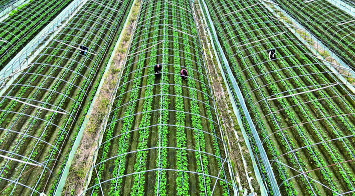 10月29日,在貴州省從江縣谷坪鄉(xiāng)銀下侗寨拍攝的羅漢果種植基地(無人機照片)。深秋時節(jié),貴州省黔東南苗族侗族自治州從江縣谷坪鄉(xiāng)銀下侗寨種植的羅漢果迎來收獲季,村民和客商忙著采摘、搬運、分揀、銷售,一片豐收景象。近年來,從江縣依托當?shù)鬲毺氐淖匀粴夂蚝屯寥罈l件,采取“公司+合作社+農(nóng)戶”模式,大力發(fā)展羅漢果產(chǎn)業(yè),讓小小的羅漢果成為了群眾增收致富的“金果果”。