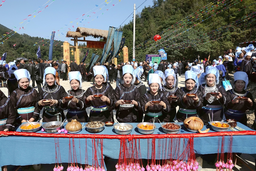 瓜節(jié)又稱“端節(jié)”,是水族最隆重的傳統(tǒng)節(jié)日。當日,在水尾水族鄉(xiāng)水尾村,水族同胞迎來了一年一度的瓜節(jié)。水族端節(jié)在2006年被列入首批國家非物質(zhì)文化遺產(chǎn)名錄。